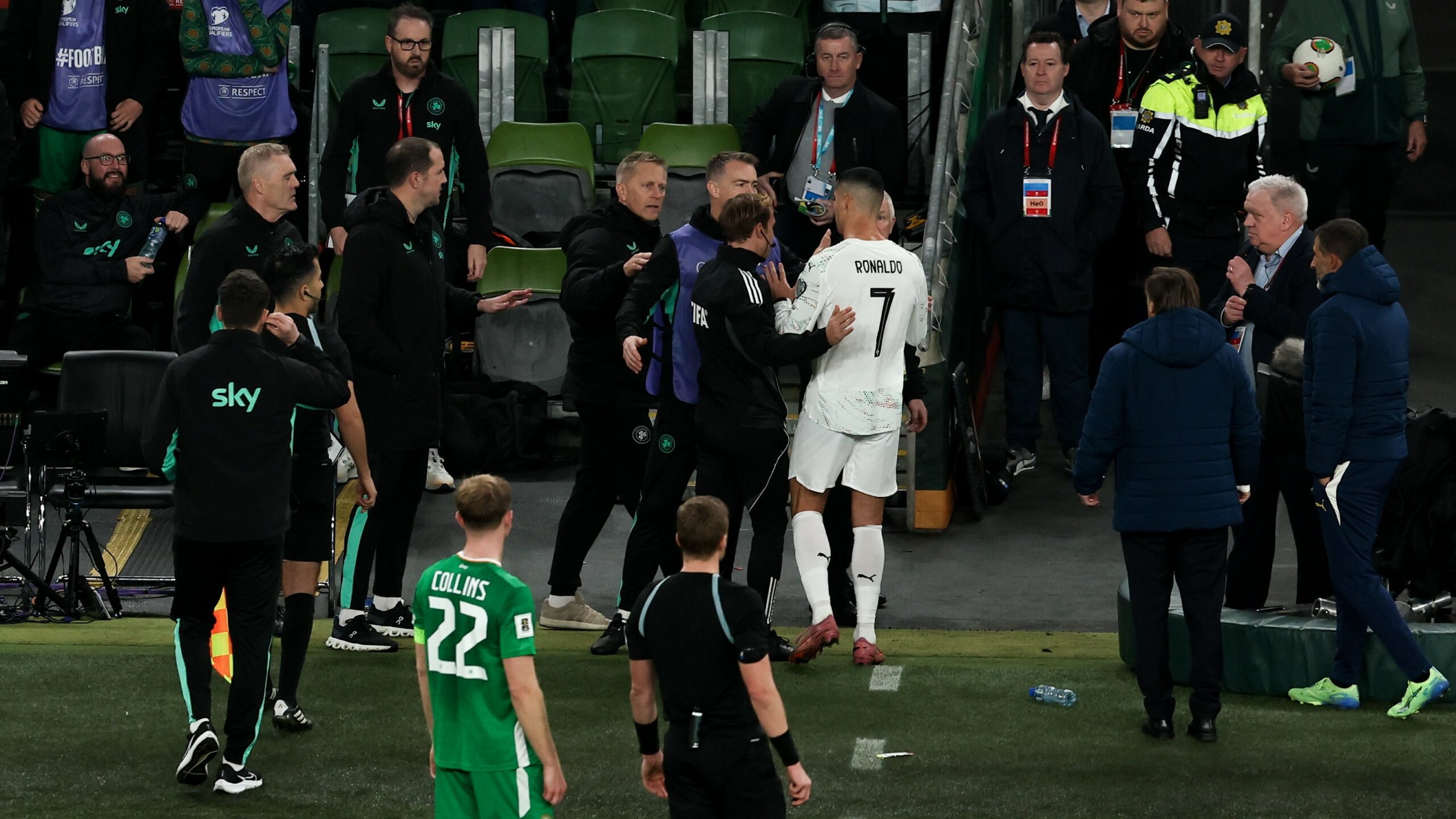 Cristiano Ronaldo láthatóan nehezen viselte a döntést. Hisezn a levonulás közben előbb szarkasztikusan megtapsolta az ír szurkolókat, majd szóváltásba keveredett az ír válogatott izlandi szövetségi kapitányával, Heimir Hallgrimssonnal.
