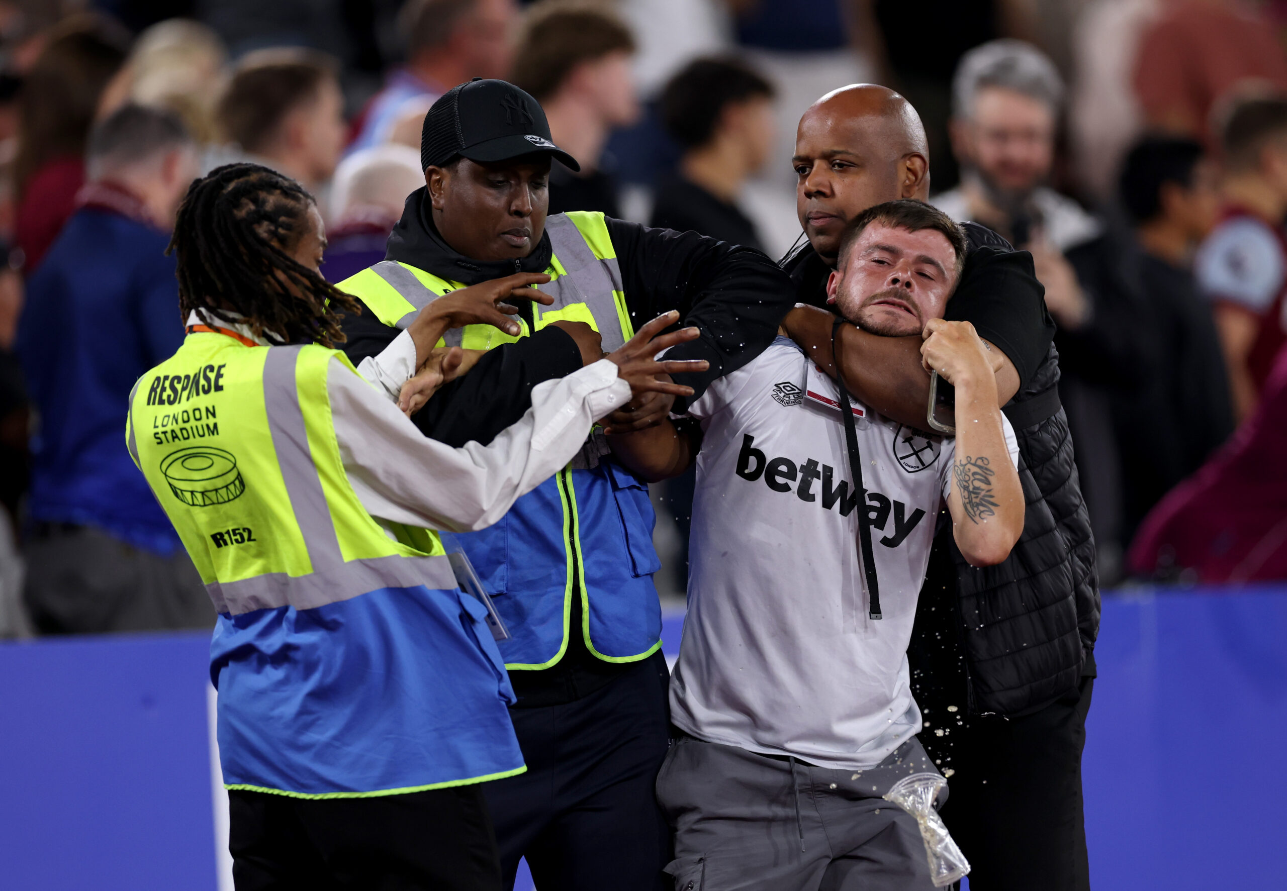 Seb Hutchinson, a Sky Sports kommentátora beszámolt róla, hogy egy drukker befutotta a pályára, több nézőt is a rendezőknek kellett visszatartaniuk.